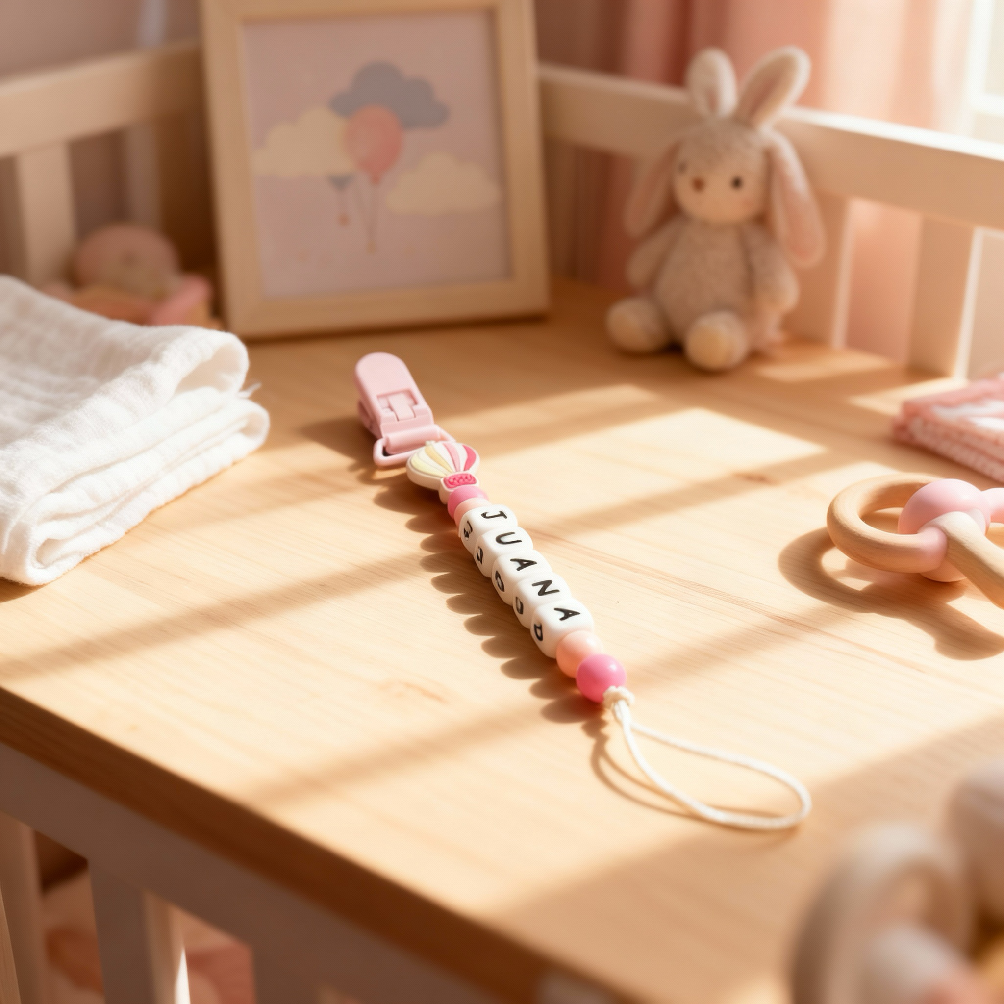 Haz tu pedido ahora y diseña un chupetero que refleje el amor y cuidado que le brindas a tu bebé.