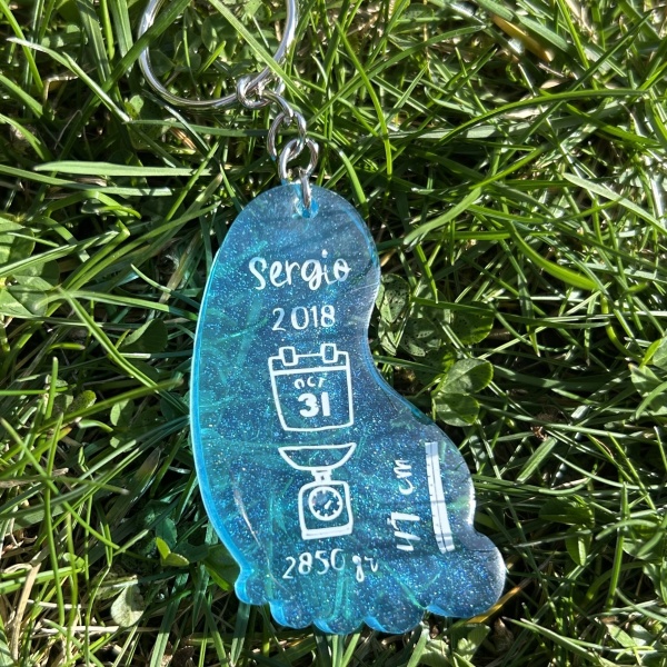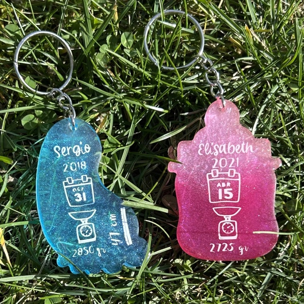 Disponibles en diferentes colores y formas, como huella de pie o biberón, para adaptarse a tus preferencias y hacer cada llavero aún más especial.