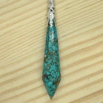 Este péndulo no solo es visualmente impactante, con sus tonalidades naturales que evocan el mar y el cielo, sino que también es ideal para quienes buscan una conexión más profunda con su bienestar interior. Al llevarlo, sentirás la energía de la turquesa protegiéndote de las influencias negativas y aportándote claridad mental.