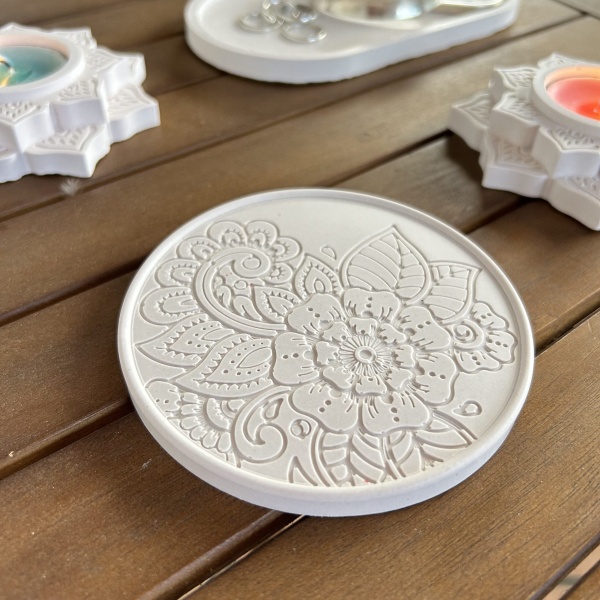 El Set Zen Ikigai incluye dos portavelas Flor de Loto, una bandeja organizadora y una bandeja pequeña con diseño floral, perfectas para crear un rincón de serenidad en tu hogar. Cada pieza está elaborada a mano, inspirada en la filosofía Ikigai, que promueve el equilibrio y la belleza en lo cotidiano. Ideal para organizar tus joyas y decorar con un toque artesanal que invita a la calma y el bienestar.