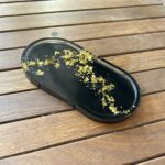 Bandeja hecha a mano en resina con un elegante tono negro profundo con detalles dorados. Perfecta para organizar tus joyas, llaves o pequeños objetos, esta pieza combina funcionalidad y estilo, destacando en cualquier ambiente.